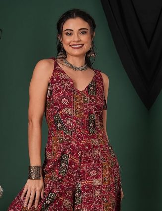 Stylish floral print crop top paired with matching palazzo pants.Perfect fusion co-ord set for casual and festive occasions.