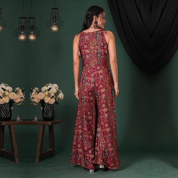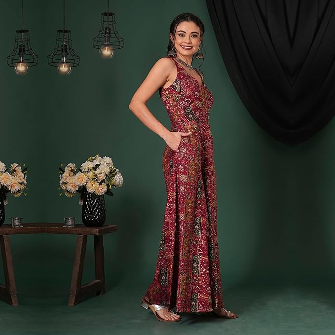 Globus Women Sweetheart Neck Strappy Shoulder Floral Print Ruched Fusion Jumpsuit