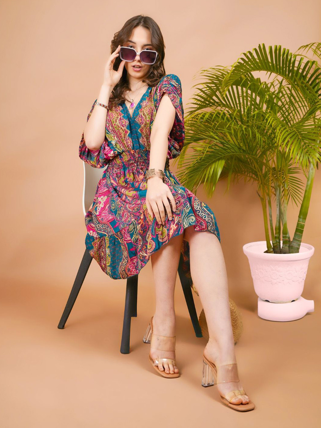 Radiant Glow Paisley Print Boho Mini Dress – Women’s