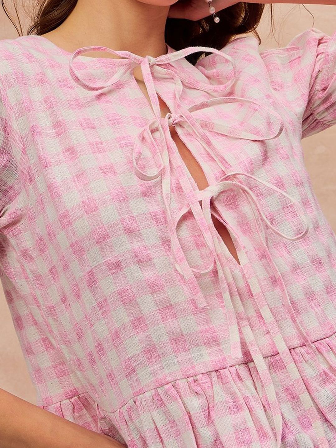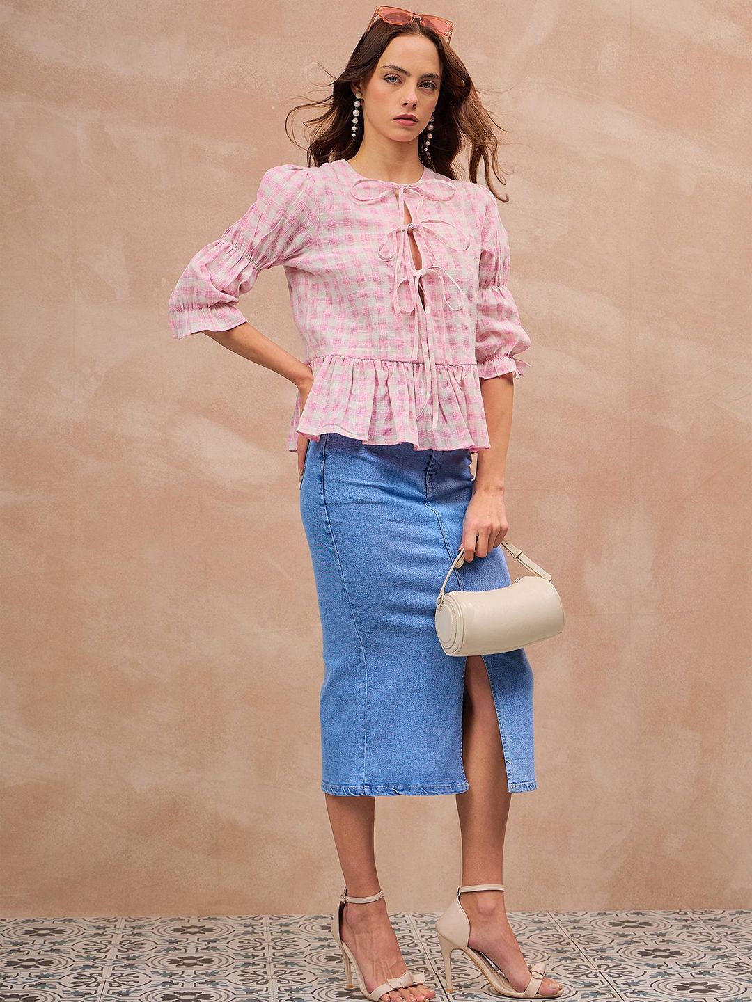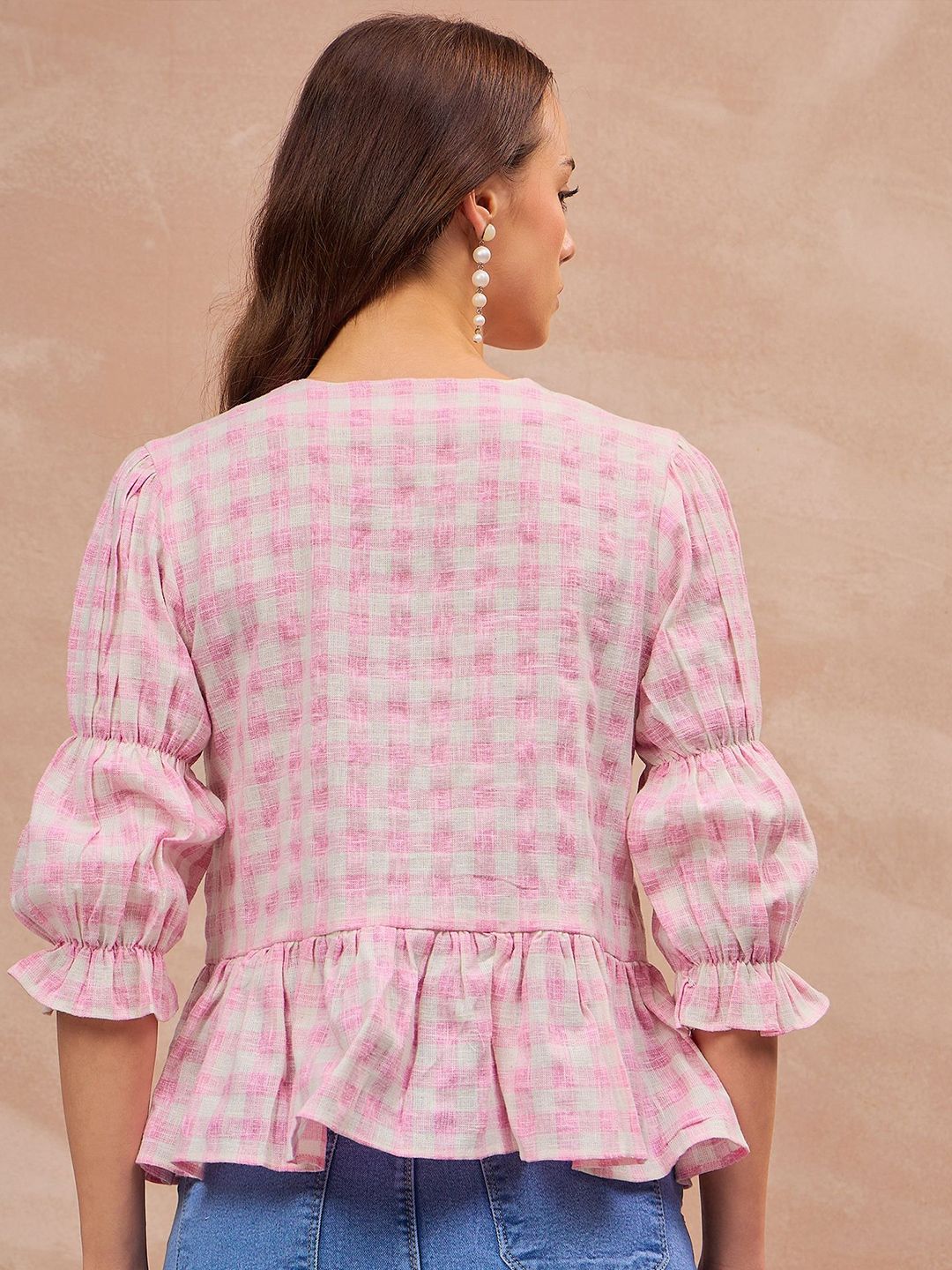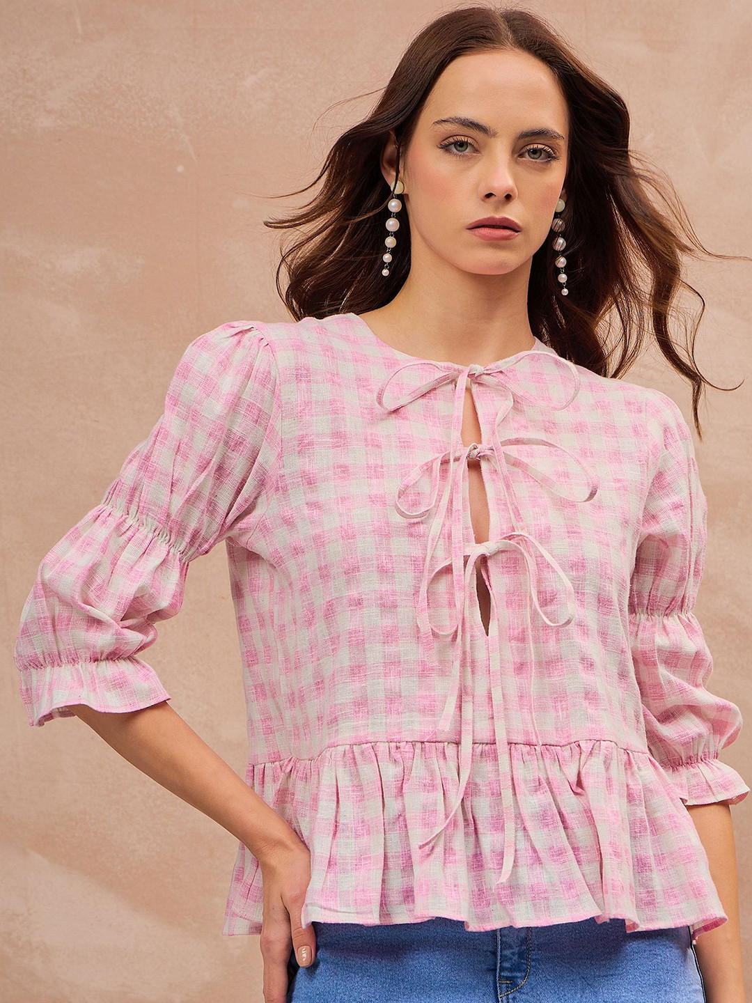 Trendy checked peplum crop top in breathable cotton for a chic streetwear vibe.