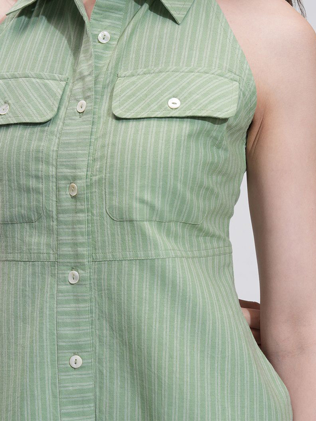 Stylish sleeveless shirt dress featuring classic stripes for a timeless look.