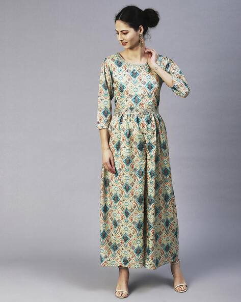 Tribal Print Jumpsuit with Waist Tie-Up – Ethnic Jumpsuits