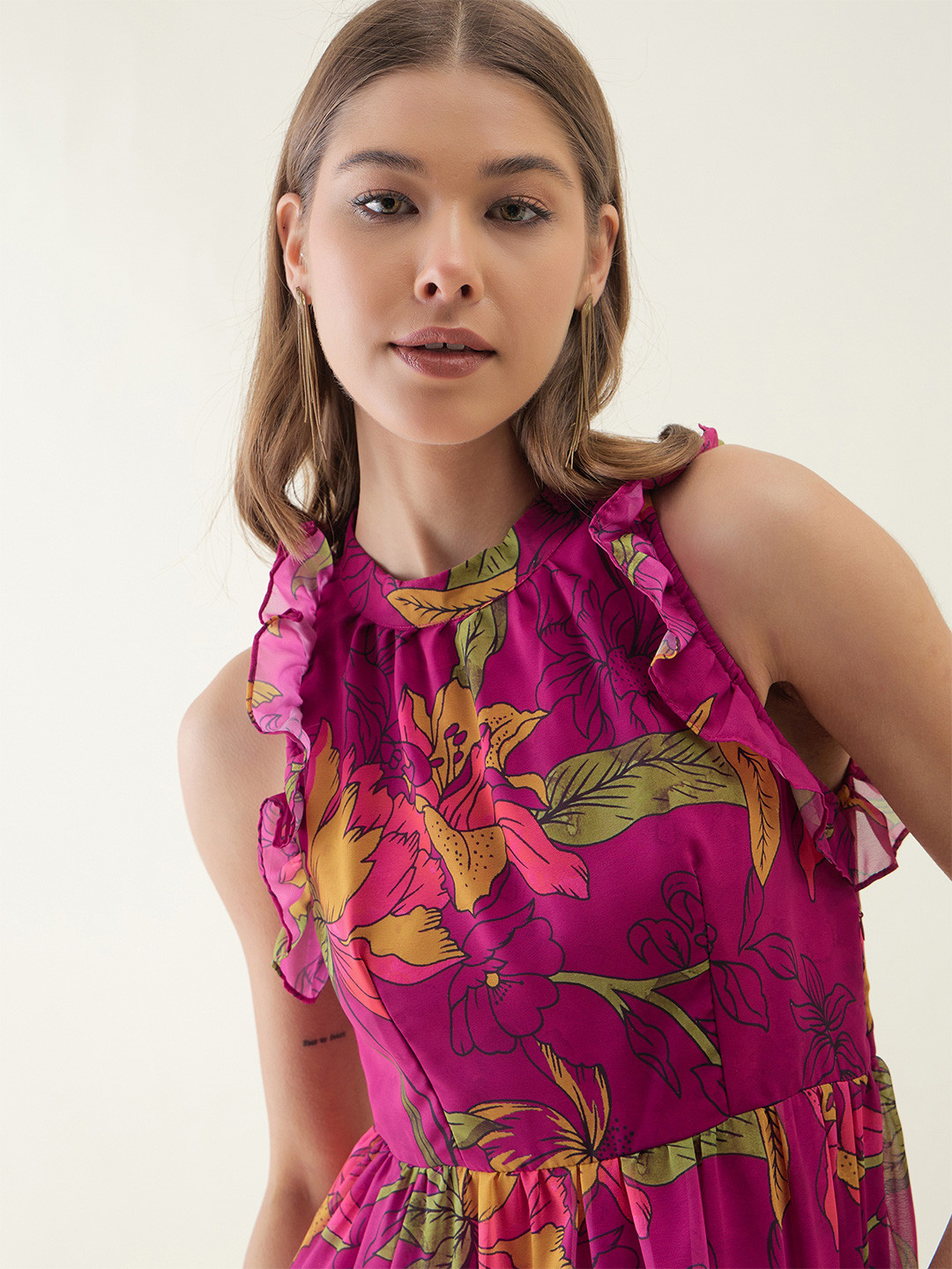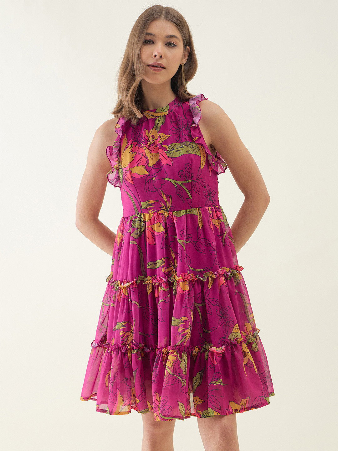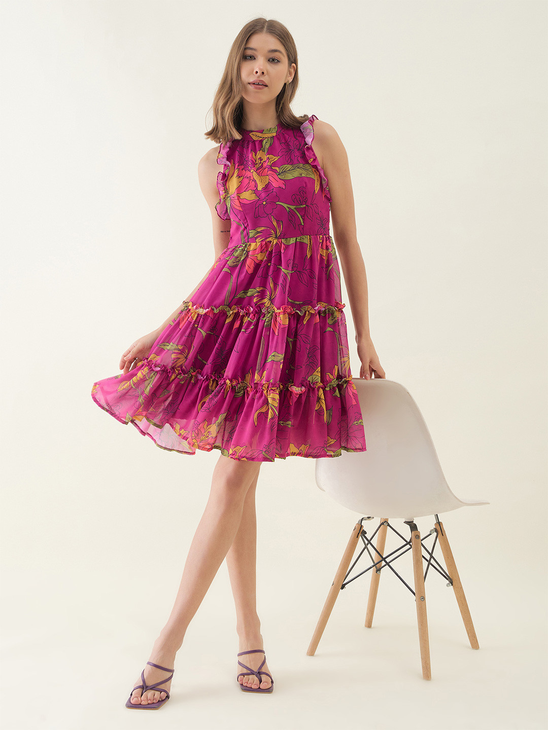 Soft and comfortable fit & flare dress adorned with delicate floral prints.