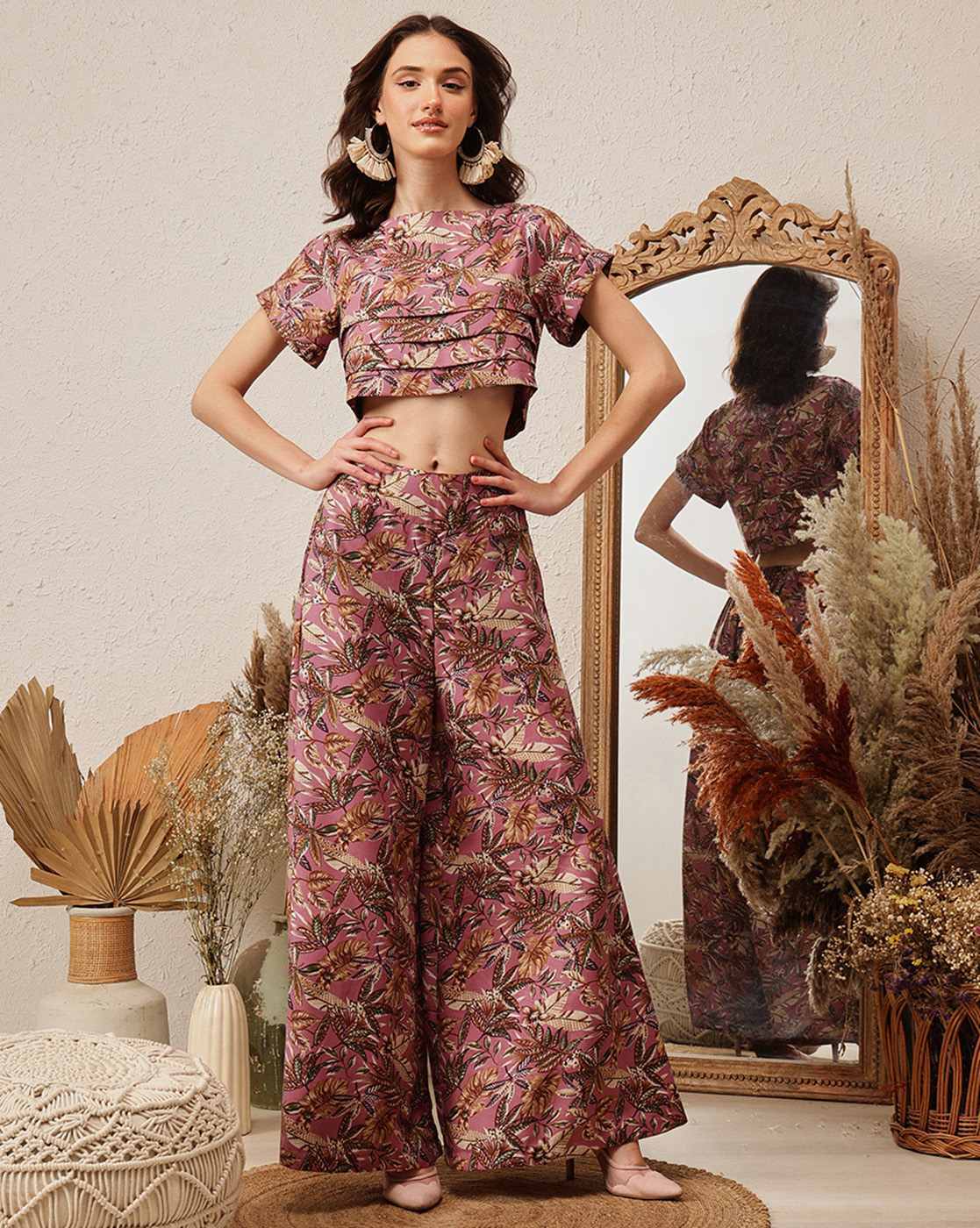 Women Leaf Print Crop Top & Palazzos Co-Ord Set – Fusion Style
